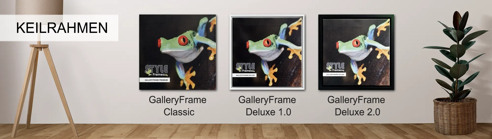 Eine Alternative zu unserem GalleryFrame Classic (Künstlerkeilrahmen) ist ein absoluter Hingucker. Bei unserem GalleryFrame Deluxe 1.0 präsentieren Sie Ihr Motiv wie auf einer Ausstellung oder Kunstmesse. Mit diesem hochwertigen Schattenfugenrahmen aus Echtholz bilden Sie einen krönenden Abschluss für Ihr Kunstwerk.Alle unsere Rahmen werden individuell auf Maß und millimetergenau für Ihren Druck gefertigt. Den GalleryFrame Deluxe gibt es in den Rahmenstärken von 10 und 20 Millimeter und ist in den Farben schwarz und weiß erhältlich.