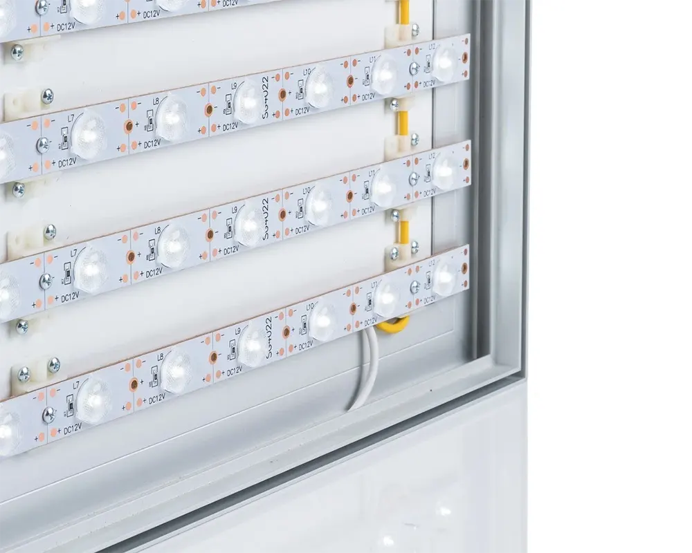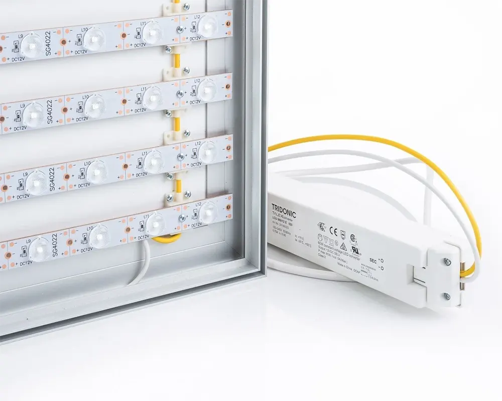 Unser ALUFrame LED 34 ES ist ein Aluminium-Textilspannrahmen mit,energieeffizienten Power-LEDs (Montage auf der Rückwand) für eine sehr homegene Ausleuchtung.