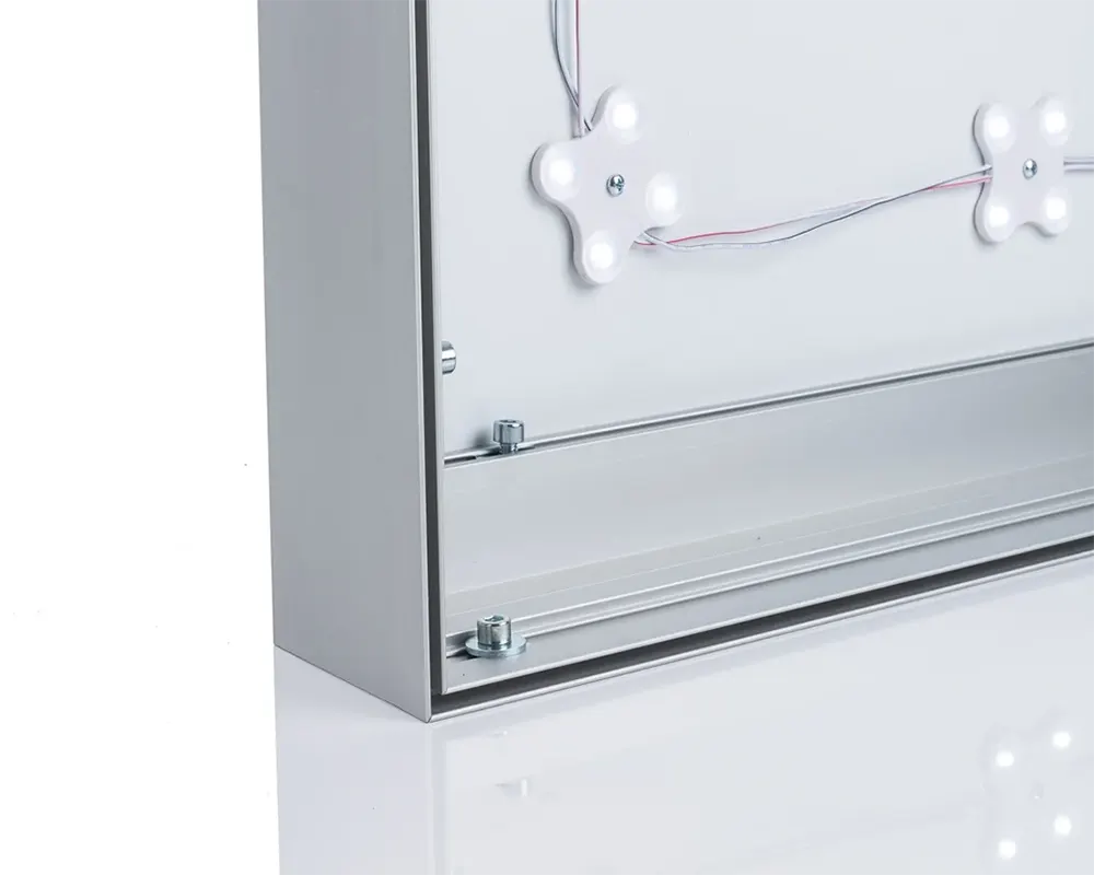 Unser ALUFrame LED 65 ES ist ein Aluminium-Textilspannrahmen mit energieeffizienten Power-LEDs (Montage auf der Rückwand) für eine sehr homegene Ausleuchtung. Die Tiefe des Rahmens bemisst sich lediglich auf 65 mm. Der Rahmen ist für eine einseitige Wandmontage geeignet. Das Maximalmaß für diesen Rahmen beträgt 250x200 cm.