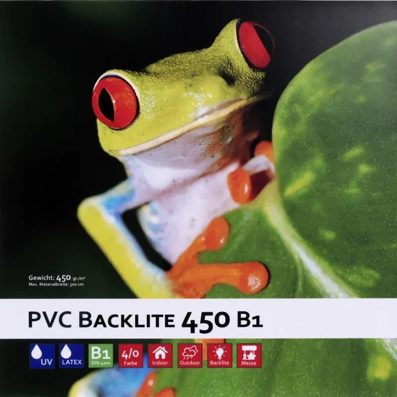 Unser PVC Backlite wird mit UV-Tinte im Digitaldruck bedruckt. Durch dieses Druckverfahren erhalten alle PVC-Banner ein brilliantes, wetter- und kratzfestes Druckbild und sind somit besonders für den Einsatz im Innen- und Außenbereich geeignet. Unser PVC Backlite 450 ist natürlich B1 zertifiziert.