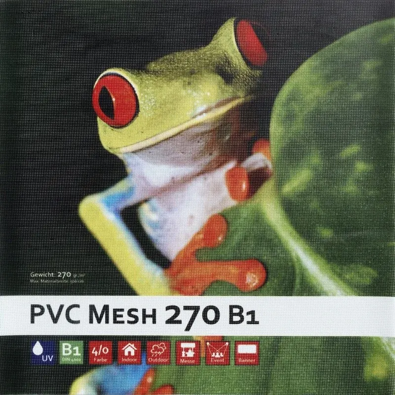 Unser PVC Mesh B1 wird mit UV-beständiger und wasserfester Tinte im UV-Digitaldruck bedruckt. Durch dieses Druckverfahren erhalten alle PVC-Banner ein brilliantes, wetter- und kratzfestes Druckbild und sind somit besonders für den Einsatz im Innen- und Außenbereich geeignet. Unser PVC Mesh 270 und 370 ist natürlich B1 zertifiziert.